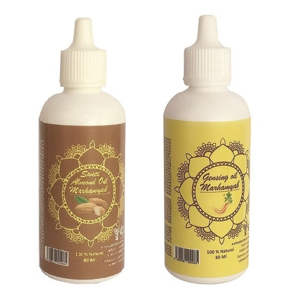 روغن جینسینگ و بادام شیرین شامل آهن ، منگنز، مس، منیزیم ، فسفر و ویتامین B6 میشود. علاوه بر این برگها و دانههای این گیاهان دارای خواص ضدمیکروبی ، آنتی اکسیدانی، ضدالتهابی و ضدویروس است. در این روغن ها اسیدهای چرب ، اسید لینولئیک و اسید اولئیک موجود باعث ایجاد رطوبت، نرمی و لطافت پوست مو و ریش و سیبیل و مژه و ابرو میشود. مصرف روزانه آن باعث رشد آن می شود و پلیفنول موجود در آن به جوانسازی پوست سر شما کمک میکند. آنتیاکسیدانهای موجود در روغن ها از آسیب سلولهای پوستی سر جلوگیری میکند. این روغن ها با وجود سطح بالای ویتامین و خواص آنتیاکسیدانی به مو درخششخاصی میبخشد و باعث افزایش گردش خون موضعی در پوست و ریشه مو می شود لازم به ذکر است این روغن ها باعث تحریک رشد ریشه مو و ابرو و مژه و ریش و سبیل می شود و از ریزش مو و ابرو و مژه و ریش و سبیل جلوگیری می کند ، این روغن درمان کننده رفع مو خوره و تقویت کننده ریشه مو و ابرو و ریش وسبیل است.