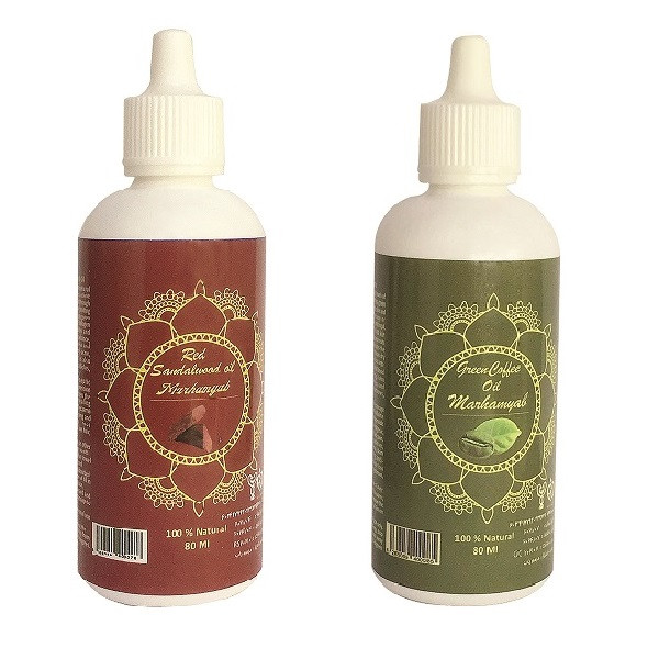 روغن قهوه سبز و صندل قرمز شامل آهن ، منگنز، مس، منیزیم ، فسفر و ویتامین B6 میشود. علاوه بر این برگها و دانههای این گیاهان دارای خواص ضدمیکروبی ، آنتی اکسیدانی، ضدالتهابی و ضدویروس است. در این روغن ها اسیدهای چرب ، اسید لینولئیک و اسید اولئیک موجود باعث ایجاد رطوبت، نرمی و لطافت پوست مو و ریش و سیبیل و مژه و ابرو میشود. مصرف روزانه آن باعث رشد آن می شود و پلیفنول موجود در آن به جوانسازی پوست سر شما کمک میکند. آنتیاکسیدانهای موجود در روغن ها از آسیب سلولهای پوستی سر جلوگیری میکند. این روغن ها با وجود سطح بالای ویتامین و خواص آنتیاکسیدانی به مو درخششخاصی میبخشد و باعث افزایش گردش خون موضعی در پوست و ریشه مو می شود لازم به ذکر است این روغن ها باعث تحریک رشد ریشه مو و ابرو و مژه و ریش و سبیل می شود و از ریزش مو و ابرو و مژه و ریش و سبیل جلوگیری می کند ، این روغن درمان کننده رفع مو خوره و تقویت کننده ریشه مو و ابرو و ریش وسبیل است.