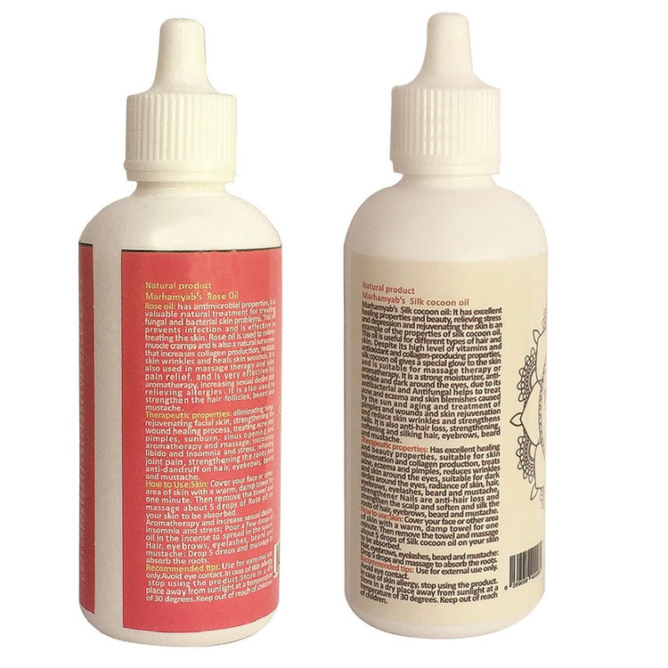 روغن پیله ابریشم و حلزون شامل آهن ، منگنز، مس، منیزیم ، فسفر و ویتامین B6 میشود. علاوه بر این برگها و دانههای این گیاهان دارای خواص ضدمیکروبی ، آنتی اکسیدانی، ضدالتهابی و ضدویروس است. در این روغن ها اسیدهای چرب ، اسید لینولئیک و اسید اولئیک موجود باعث ایجاد رطوبت، نرمی و لطافت پوست مو و ریش و سیبیل و مژه و ابرو میشود. مصرف روزانه آن باعث رشد آن می شود و پلیفنول موجود در آن به جوانسازی پوست سر شما کمک میکند. آنتیاکسیدانهای موجود در روغن ها از آسیب سلولهای پوستی سر جلوگیری میکند. این روغن ها با وجود سطح بالای ویتامین و خواص آنتیاکسیدانی به مو درخششخاصی میبخشد و باعث افزایش گردش خون موضعی در پوست و ریشه مو می شود لازم به ذکر است این روغن ها باعث تحریک رشد ریشه مو و ابرو و مژه و ریش و سبیل می شود و از ریزش مو و ابرو و مژه و ریش و سبیل جلوگیری می کند ، این روغن درمان کننده رفع مو خوره و تقویت کننده ریشه مو و ابرو و ریش وسبیل است.